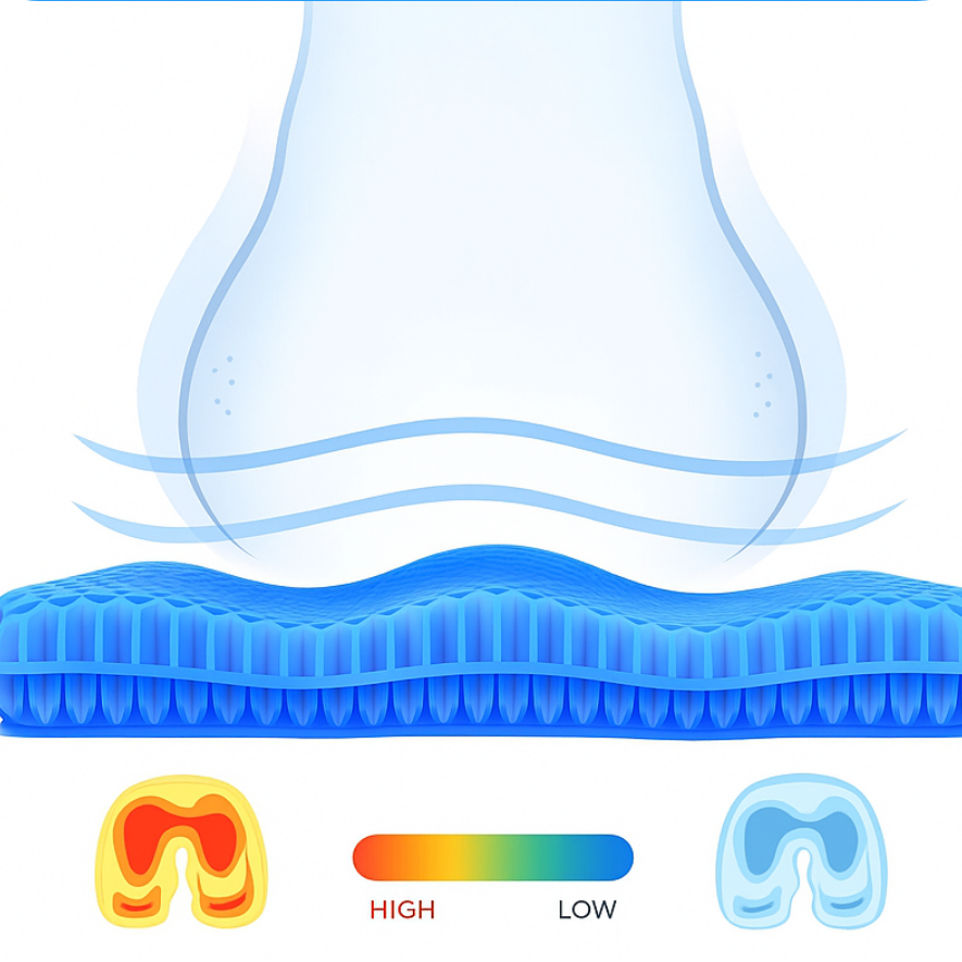 Our elastic honeycomb gel adapts to your body and spreads your weight evenly. It doesn’t flatten, doesn’t feel like a rock, and doesn’t trap heat. You finally get real pressure relief exactly where you need it, even after long hours of sitting.