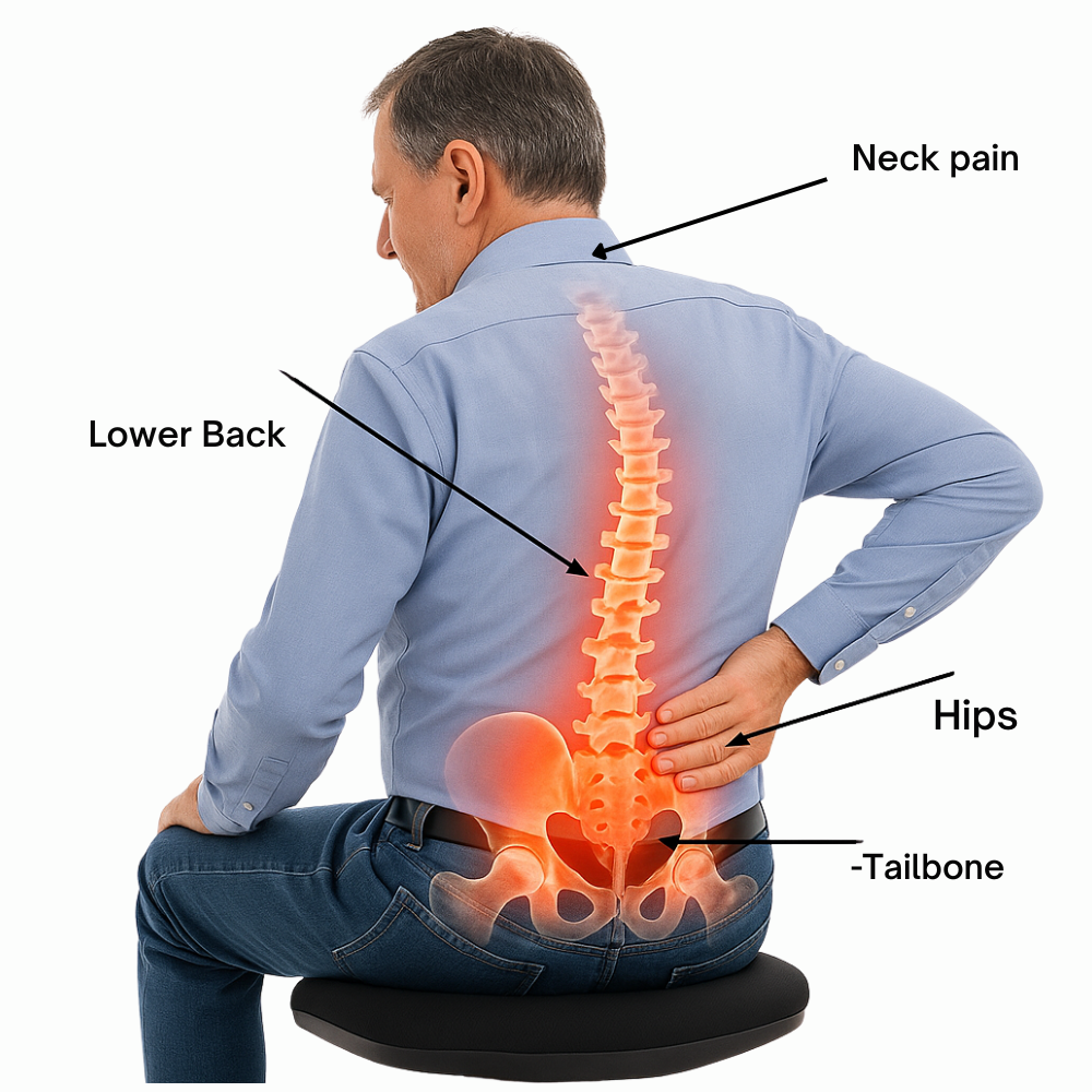 Sitting for long hours puts pressure on your lower back, hips, and tailbone. Most chairs don’t distribute weight properly, so the pain builds up and makes it harder to focus, work, or relax.